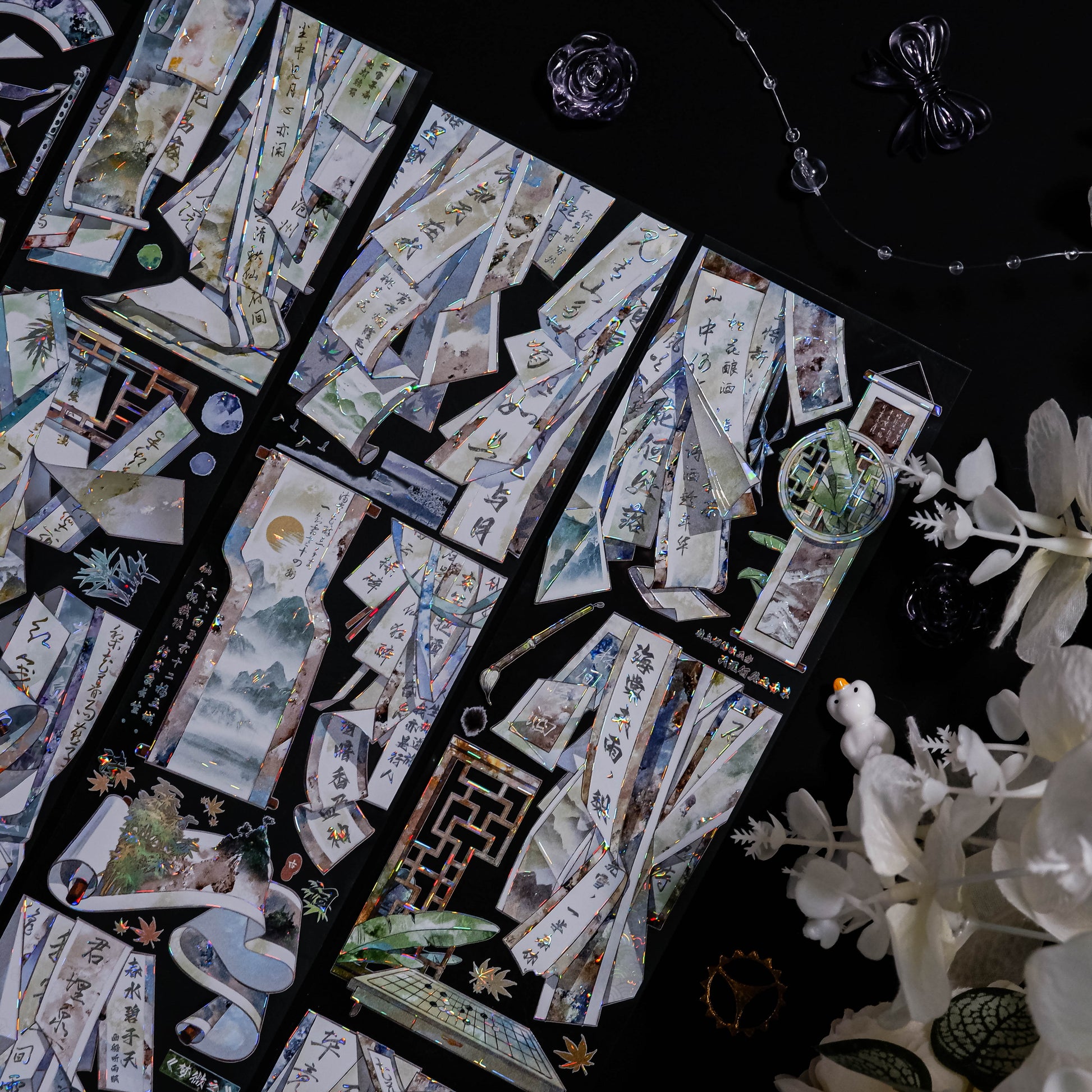 This collection celebrates the poetic flow of traditional Chinese art. Unlike rigid patterns, the fluid brushstrokes and intentional negative space bring a sense of Zen and breathability to your pages. It makes your journal spread look less like a sticker collage and more like a hand-painted masterpiece.