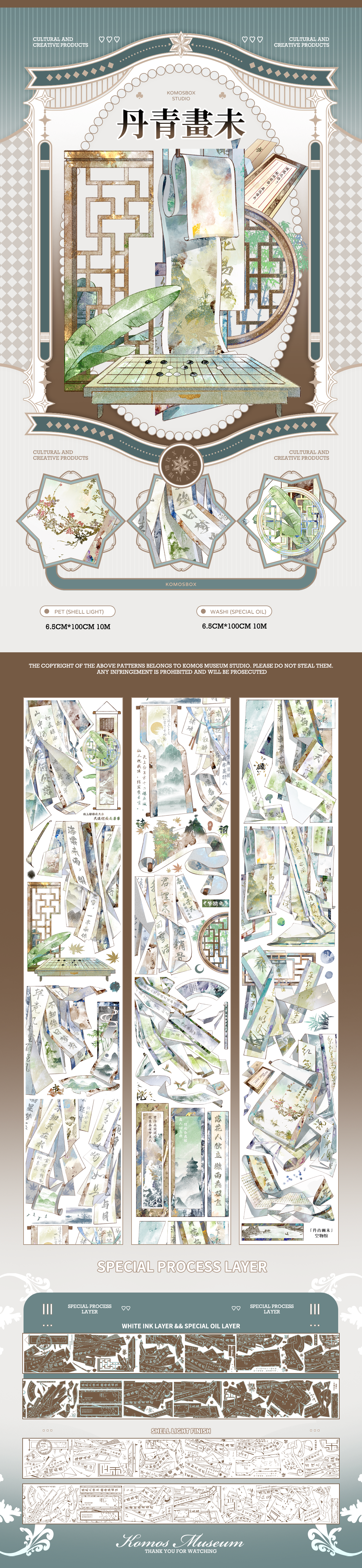 About the Design: The original name "丹青画未" means "The Ink Painting is Not Yet Finished." It embraces the Eastern philosophy of Liu Bai (leaving emptiness), suggesting that the scroll is incomplete until you add your own creativity to it.
