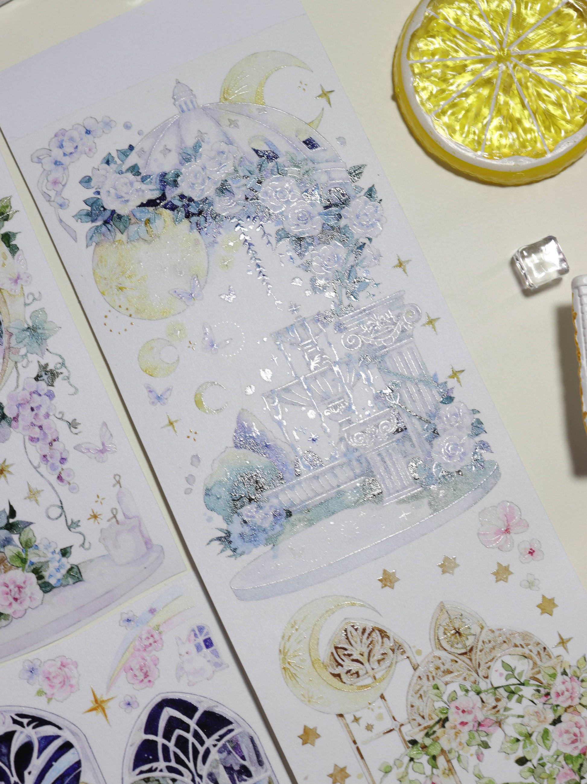 Step into a realm where architecture defies gravity. This design features classical Greek columns, surreal floating gardens, and statues entangled with vines. It blurs the line between reality and fantasy, creating a grand, theatrical backdrop for your most creative collages.