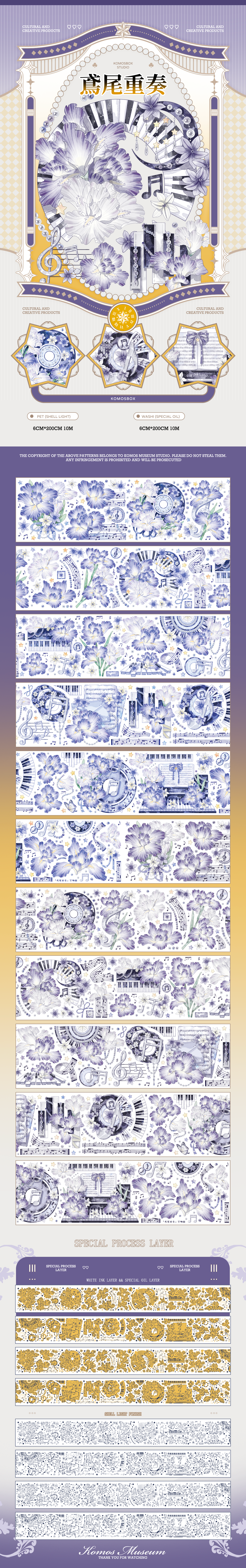 About the Design: "鸢尾重奏" translates to "Iris Sonata" or "Iris Ensemble." While the iris symbolizes wisdom, "重奏" (Ensemble) implies a harmonious performance of multiple instruments. Here, it suggests that the blooming flowers are singing together in a quiet, purple harmony on paper.