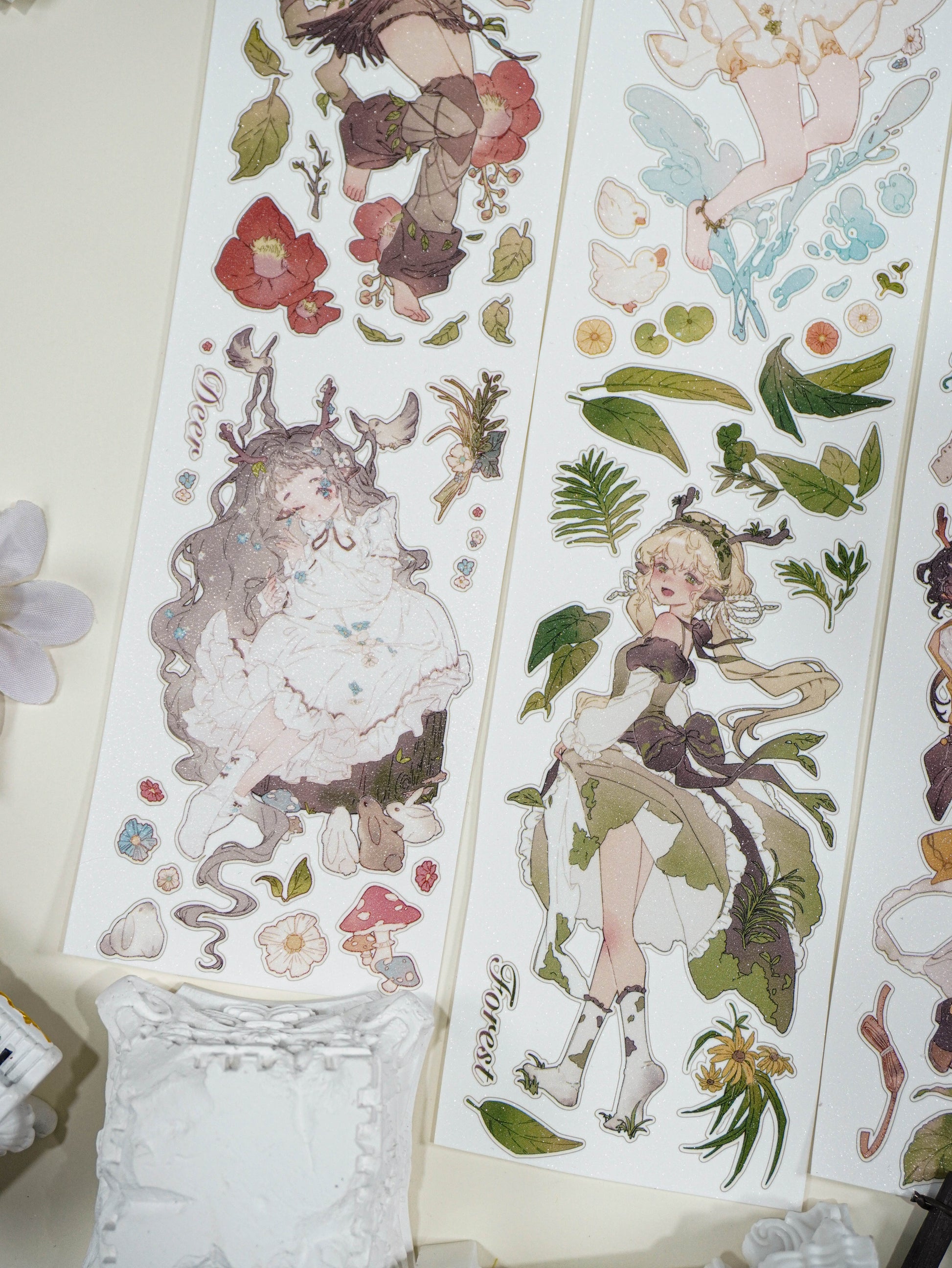 Ethereal and enchanting. Deep within a misty forest, the spirit deer wanders with antlers resembling tree branches. The design uses lush greens and soft, glowing lights to create a fairylike atmosphere. This tape adds a touch of magic and tranquility to any nature-themed spread.